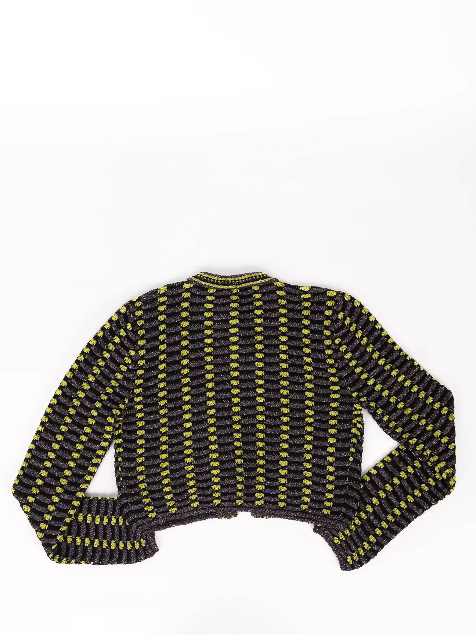 Missoni Metallic Stripe-Knit Cardigan - Casaco curto de malha multicolor (roxo, preto e verde lima) c/ etiqueta original