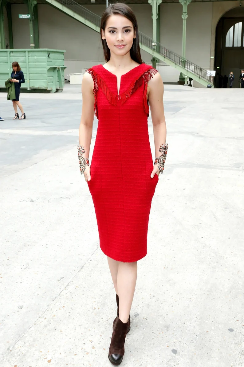 Vestido Chanel tweed c/ franjas (desfile Dallas Rouge 2014)