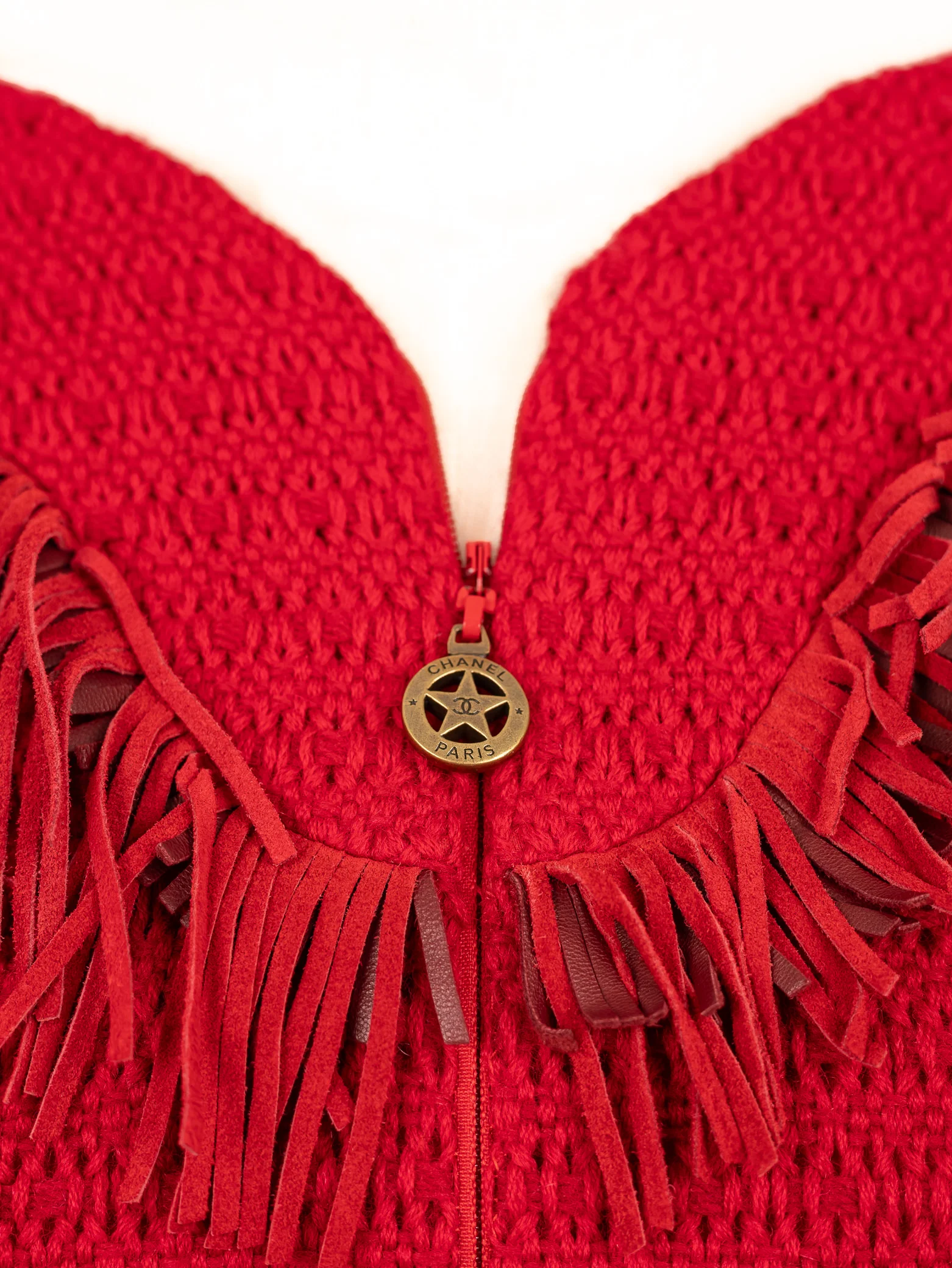 Vestido Chanel tweed c/ franjas (desfile Dallas Rouge 2014)